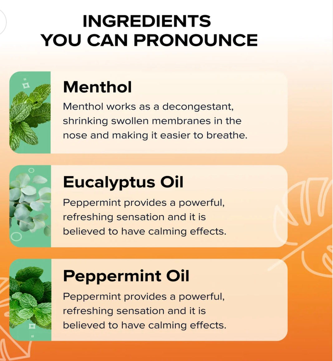 - MINT: Menthol, Eucalyptus Oil, Peppermint Oil, Spearmint Oil.